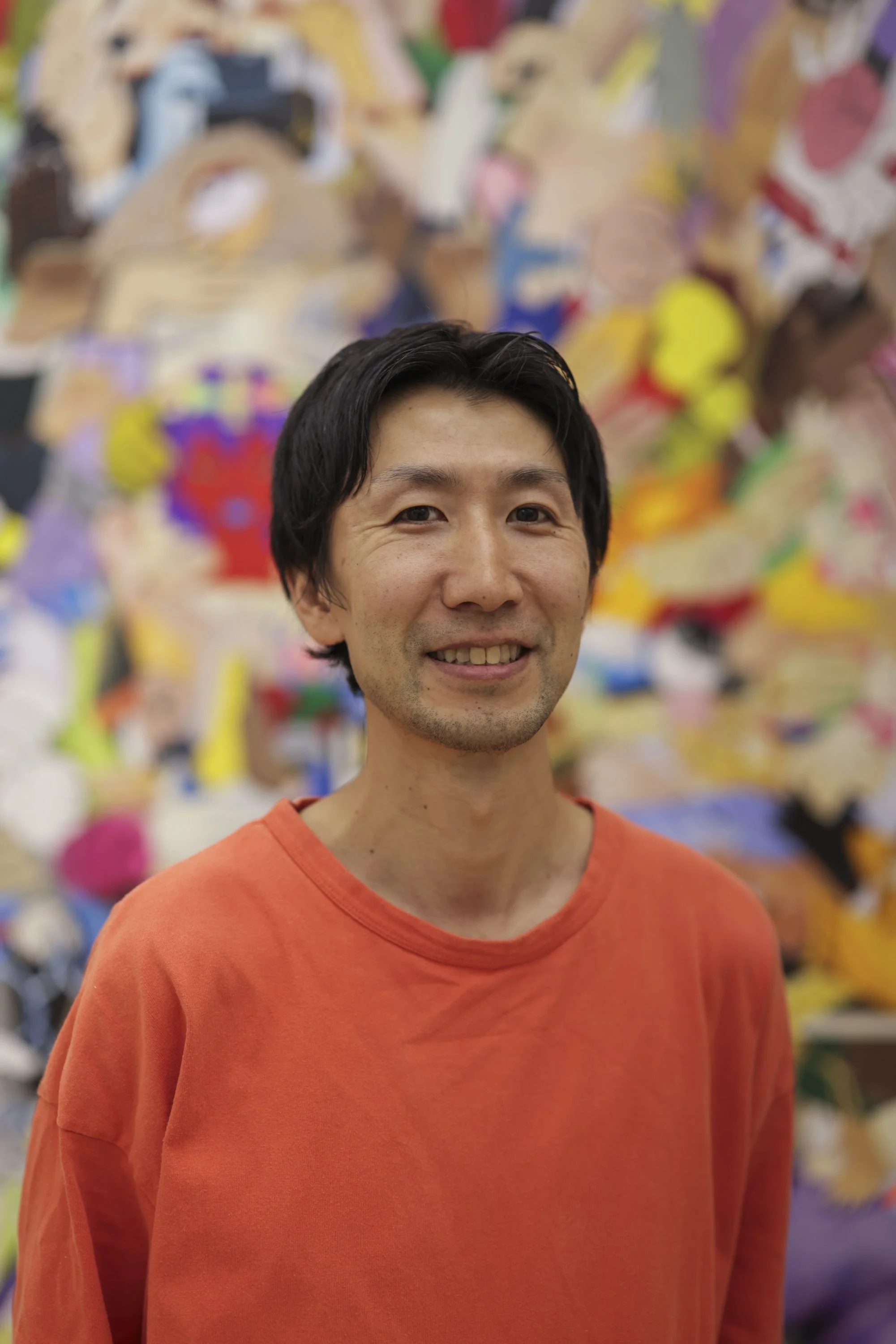 Hiroshi Masuda is a Japanese visual artist based in Brooklyn, blending pop culture, Buddhism, and the Japanese concept of mitate (見立) “seeing anew,” a concept of using old things in new ways, in his work. His vibrant, cartoonish paintings juxtapose symbols, art, and everyday objects to explore cultural, social, and political themes with a playful yet profound approach.